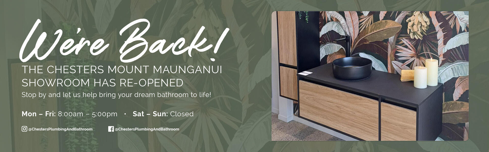 Chesters Plumbing & Bathroom Centre is proudly New Zealand owned and operated with more than 50 years of industry experience. We pride ourselves on providing excellent quality plumbing supplies, bathroom fittings and exceptional customer service to a wide range of customers, including plumbers, gasfitters, builders, homeowners, and renovators.